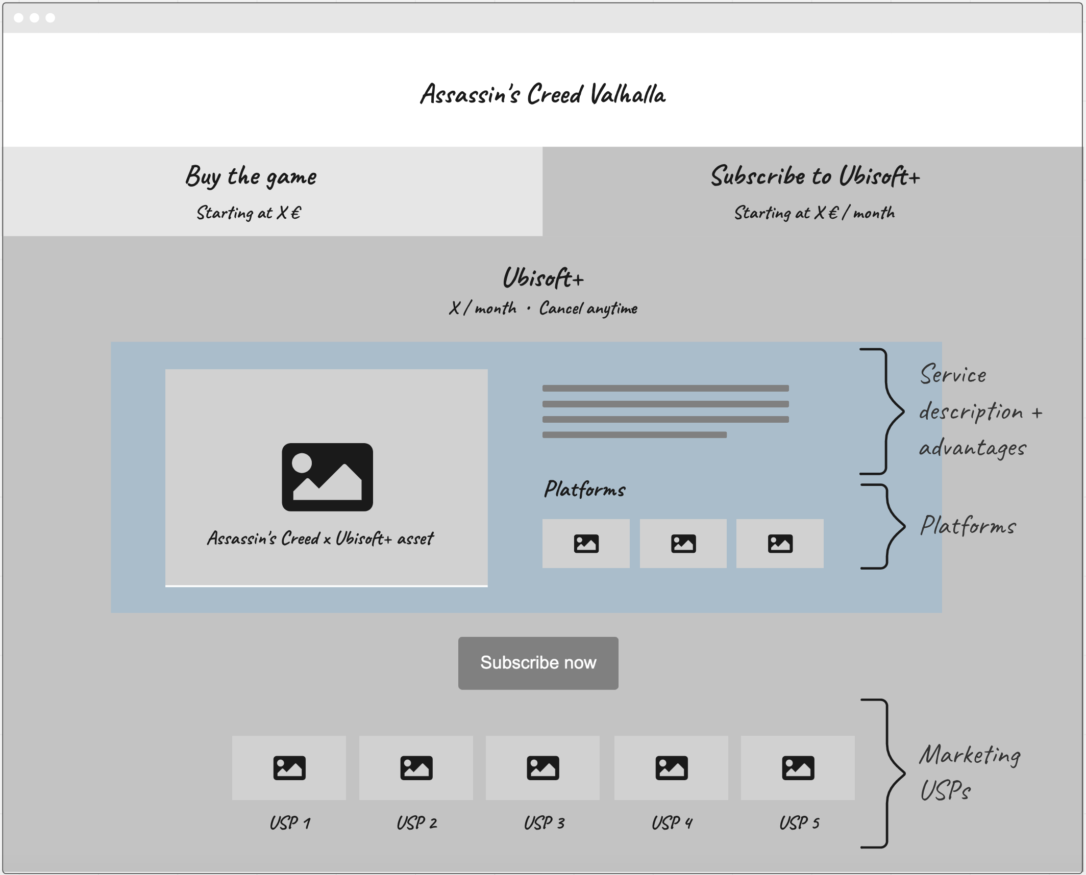 • Bring more clarity: Ubisoft+ has a low awareness so bringing more details to understand the service is crucial. Such as the key features and advantages.
