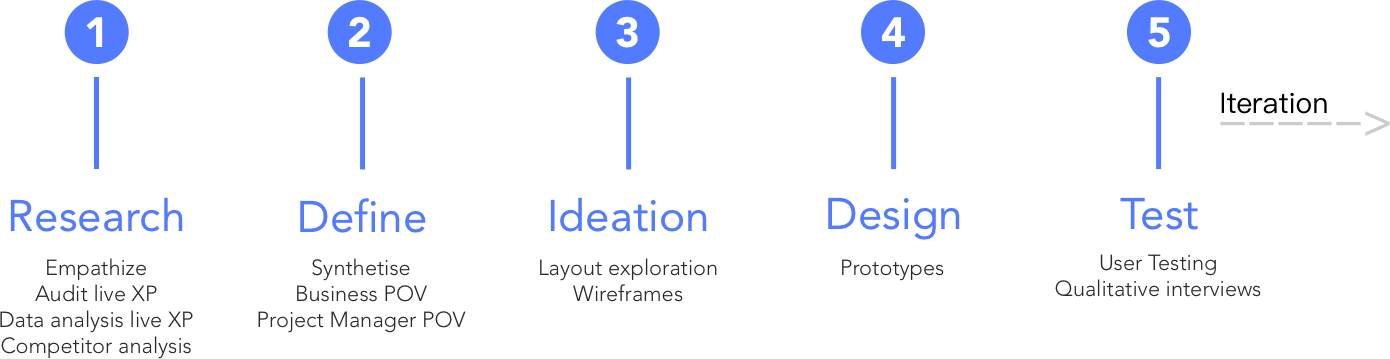 • Stay user centric: It’s a project with a strong marketing stake, as UX I have to carry the voice of the user and since there is no established business guidelines I adopted a different position from the competition.